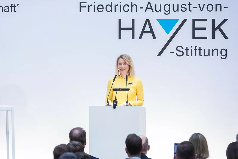 Peaminister Kallas ja liidukantsler Scholz esinesid koos ühel laval ka Friedrich August von Hayeki fondi poolt korraldatud konverentsil, mis on pühendatud mõjuka majandusteadlase Hayeki populaarse teose „Tee orjusesse“ ilmumise 80. aastapäevale.