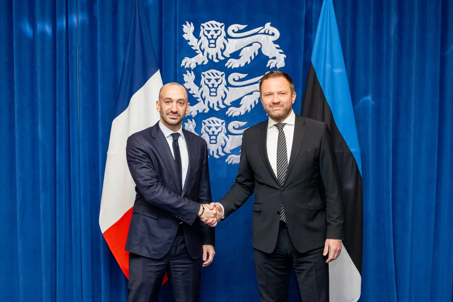 Välisminister Margus Tsahkna kohtus täna, 2. veebruaril Tallinnas Eestisse visiidile saabunud Prantsusmaa Euroopa asjade ministri Benjamin Haddadiga, kellega arutati Euroopa julgeoleku tugevdamist, Ukraina toetamist, Venemaa survestamist ning Atlandi-üleseid ja kahepoolseid suhteid. Samuti allkirjastasid ministrid Eesti ja Prantsusmaa strateegilise partnerluse tegevuskava aastateks 2026–2030.