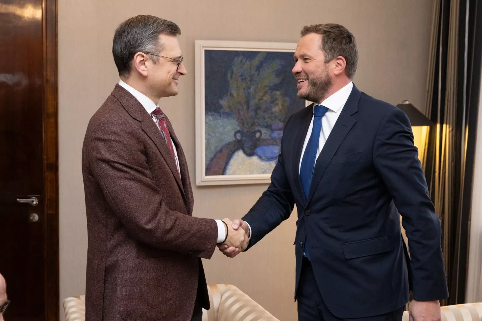 Välisminister Margus Tsahkna kohtus täna, 11. jaanuaril Tallinnas oma Ukraina kolleegi Dmõtro Kulebaga, kellega arutati Ukraina Euroopa Liiduga ühinemist, külmutatud varade kasutamist Ukraina ülesehitamiseks, teekonda NATO liikmesuseni ning Ukraina rahuvalemit.