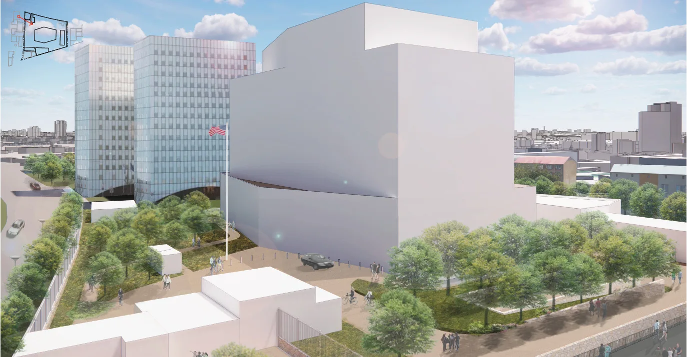 USA saatkond ehitab uue hoonekompleksi Tallinna kesklinna ministeeriumide ühishoone taha Suur-Ameerika ja Väike-Ameerika tänava vahele. Hoone maksimumkõrgus võib olla 45 meetrit ja detailplaneeringu illustratsioonidest võib aru saada, et sel juhul tuleb saatkonna peahoone sama kõrge nagu superministeeriumi hoone.