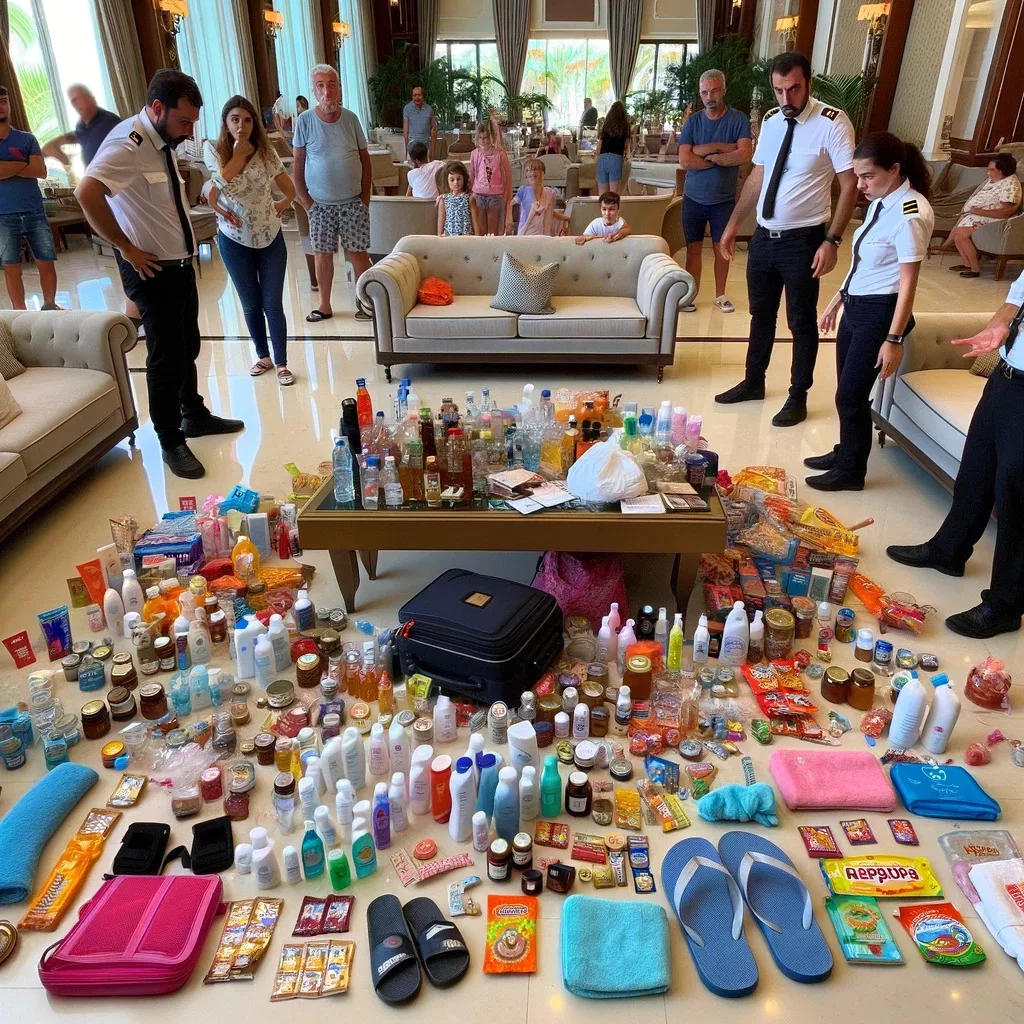 Kui hotellitöötajad palusid külalistel oma kohvrid ja kotid avada, leidsid nad sealt hulgaliselt hotellist võetud esemeid. Avastati mitmesugused hügieenitarbed väikepakendites, sealhulgas seebid, šampoonid, geelid, vannimütsid ja toatuhvlid. Lisaks oli restorani buffeelauast võetud kaasa erinevaid toiduaineid väikepakendites, nagu mesi, džemmid, kastmed ja Türgi maiustused, samuti oli proovitud plastikpudelites kaasa viia hotelli restoranist pärit veini ja viina.